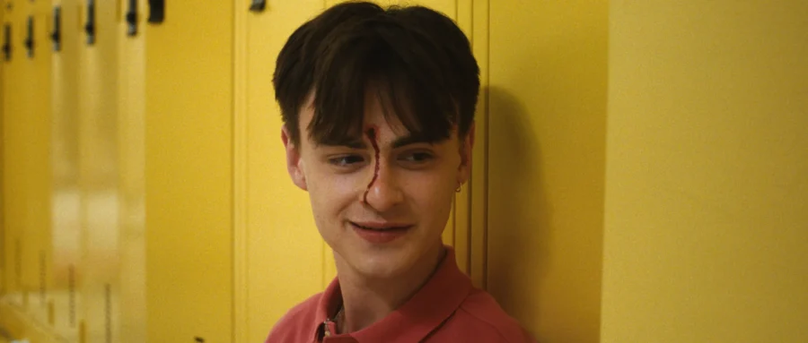 From the moment we meet Balthazar “Balty” Malone (Jaeden Martell), a wealthy prep school brat with an absent father and neglectful mother (Jennifer Ehle), his feigned despair in posting reels about school violence is unapologetically, bitterly funny; the super smart Martell’s labored crocodile tears are a taboo hoot—even if the notion of a virtue-signaling social conscience masking aloof disaffection is anything but. So is his thwarted courtship of “activist” scholarship student Eleanor (Pippa Knowles), the pair playing bloodied “victims” in a meet-cute school shooting drill; things go south after Balty makes a clumsy advance using explicit carnage footage as a turn-on. Yes, really.